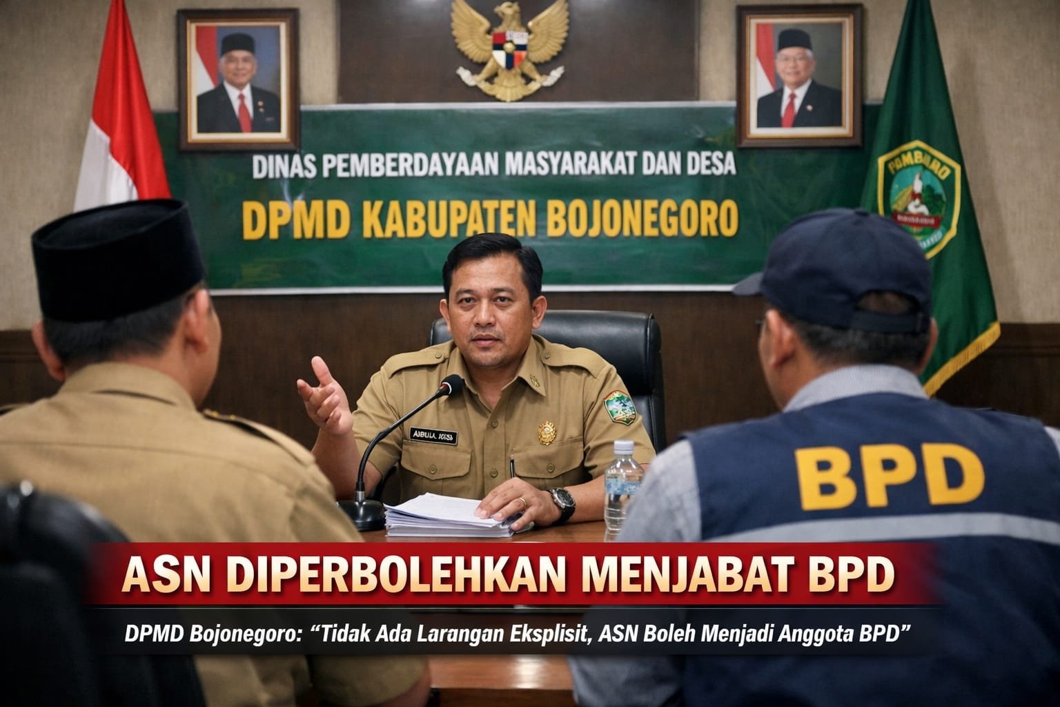 BOJONEGORO UpWarta.com – Menanggapi aduan masyarakat terkait dugaan rangkap jabatan antara Aparatur Sipil Negara (ASN) dan anggota Badan Permusyawaratan Desa (BPD), Dinas Pemberdayaan Masyarakat dan Desa Kabupaten Bojonegoro (DPMD) memberikan klarifikasi resmi guna meluruskan polemik yang berkembang.